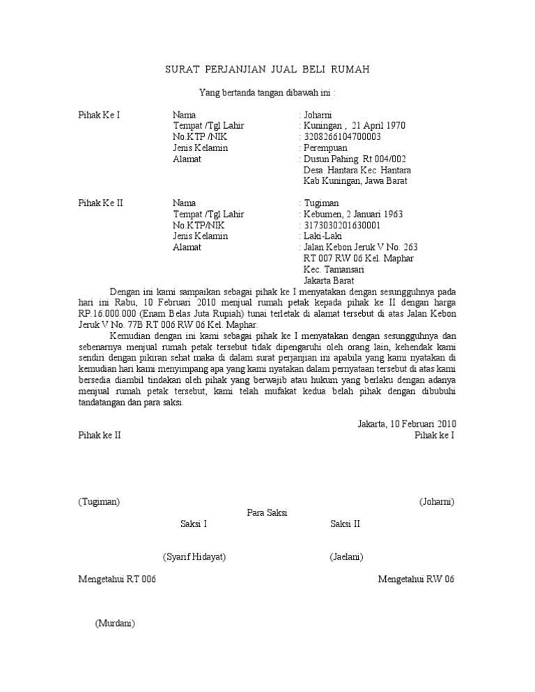 Direktur pt abc alamat : Jakarta selaku yang surat perjanjian jual beli rumah.keberadaan surat perjanjian sangat penting dalam transaksi properti. Surat perjanjian komitmen fee yang bertanda tangan dibawah ini : Saya yang bertanda tangan di bawah ini : Surat perjanjian jual beli ialah surat yang dibuat penjual serta pembeli dalam menjelaskan hak dan juga kewajiban dari kedua belah pihak.